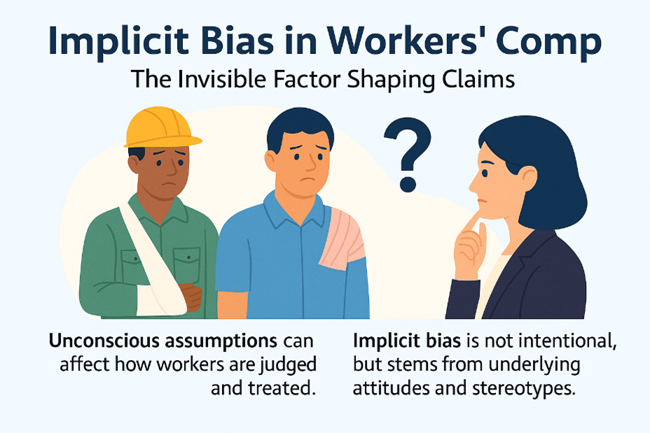 Workers’ compensation rests on a clear promise: if you are injured at work, you should receive timely care, fair support, and a safe path back to work. Yet even well-designed systems rely on human judgment.  Judgment comes with blind spots. One of the biggest (and often unseen) influences on claim outcomes is implicit bias: unconscious assumptions that affect how we interpret people, pain, and credibility.